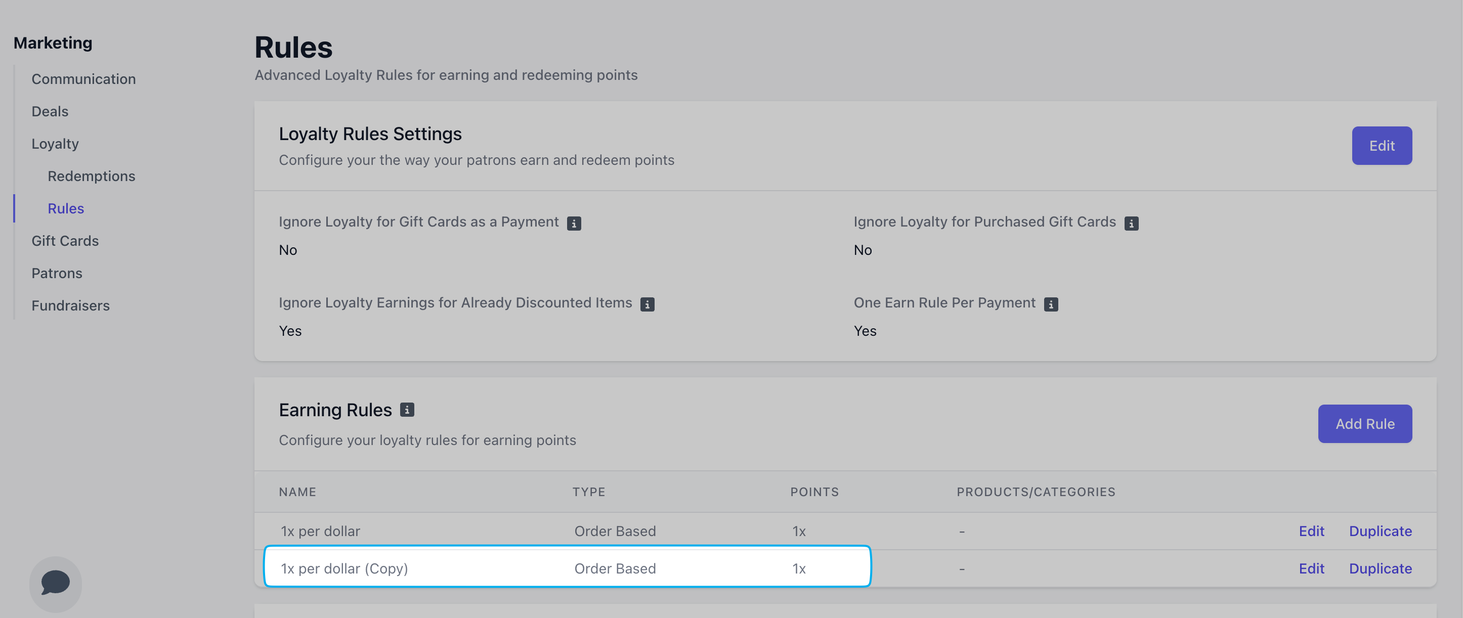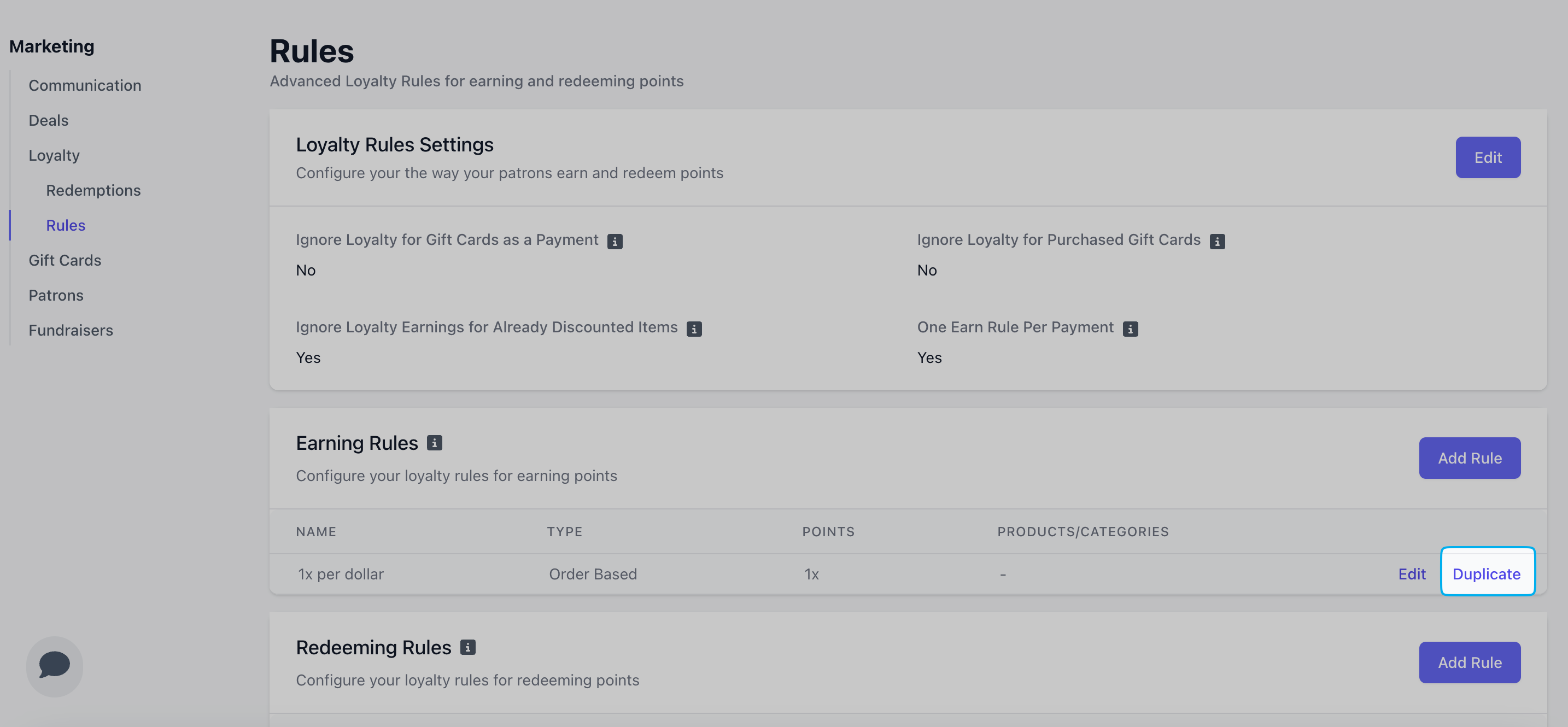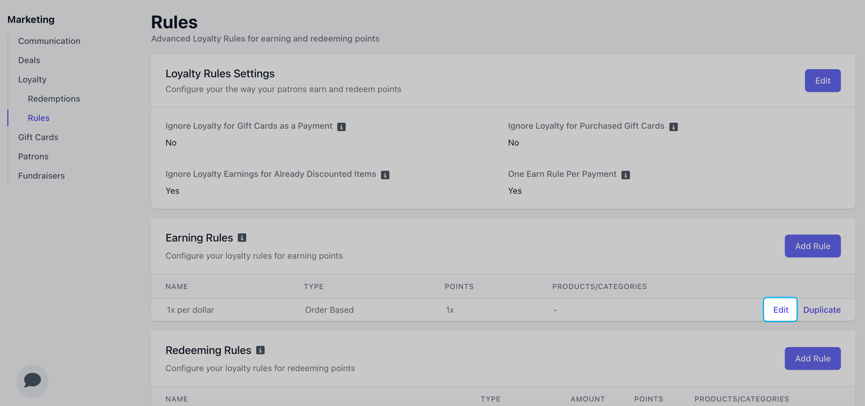 Click Rules and navigate to Earning Rules.Earning rules will determine how your customers earn loyalty points.